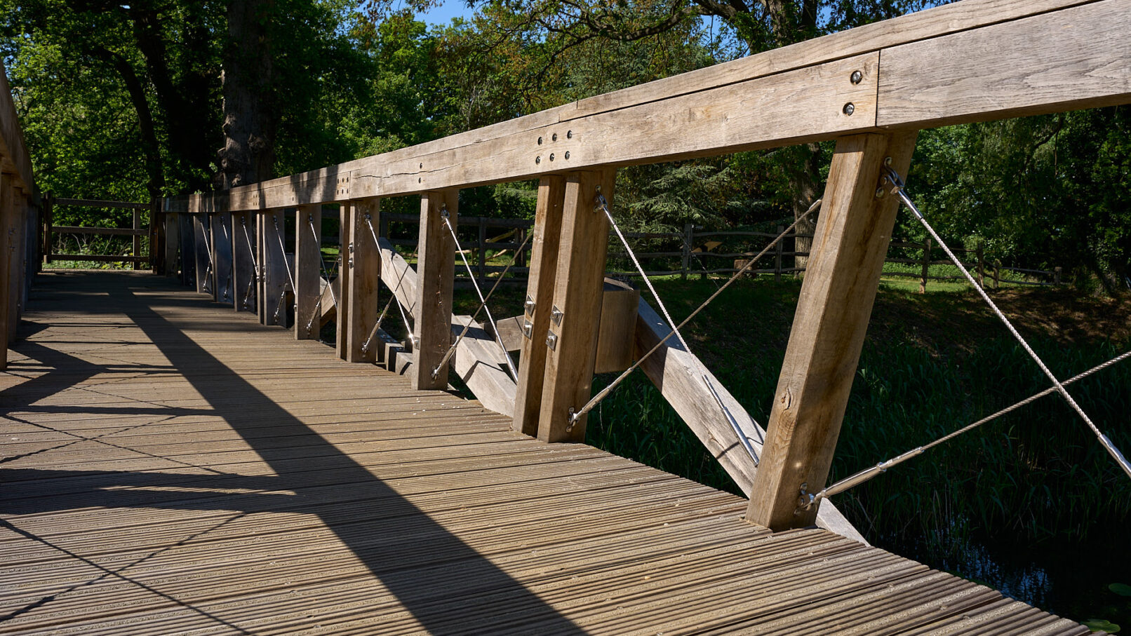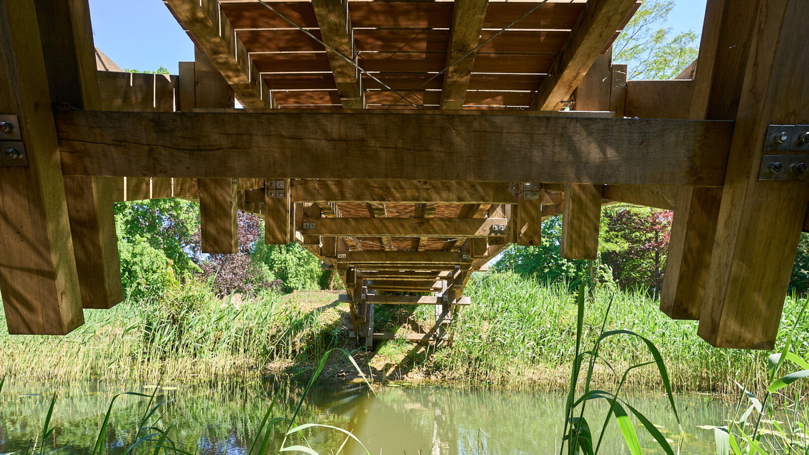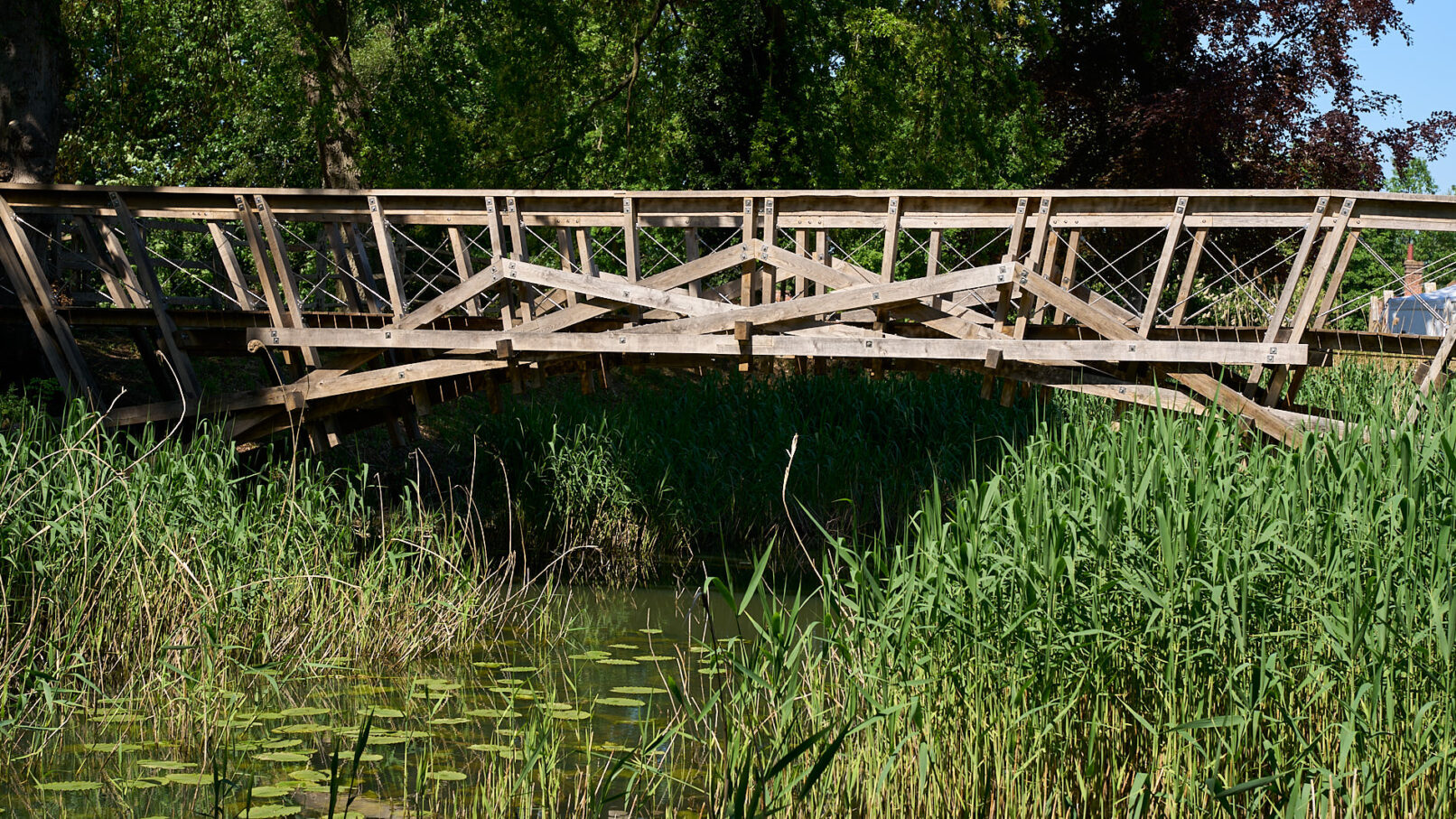 15m footbridge constructed (upside down) in solid oak at our yard then dismantled and reconstructed at the Food Museum, Stowmarket